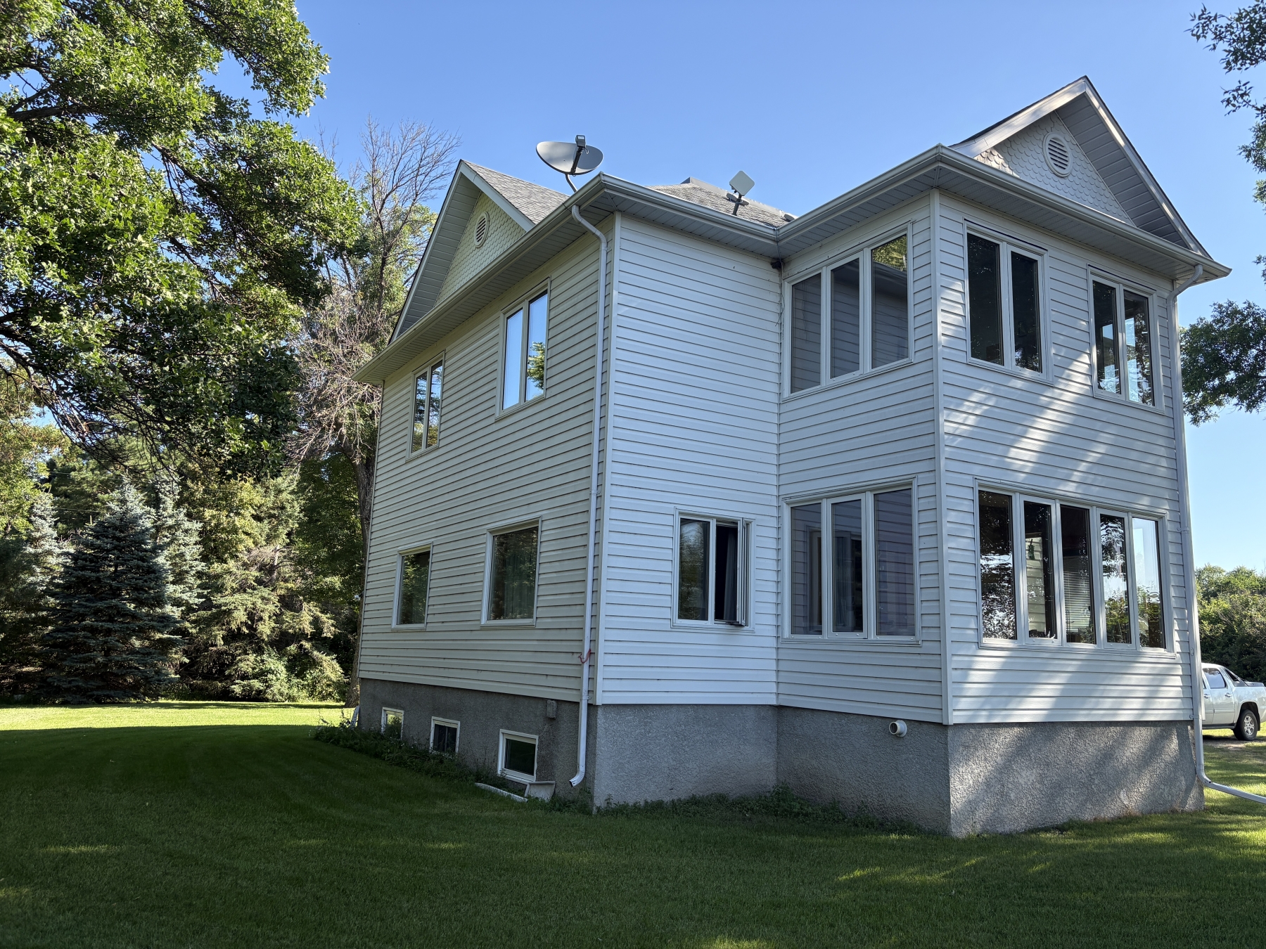 Welcome to this picturesque 25-acre property just minutes from Roland, Manitoba, this 2,000 sq ft two-storey character home offers the perfect blend of timeless charm and modern updates.