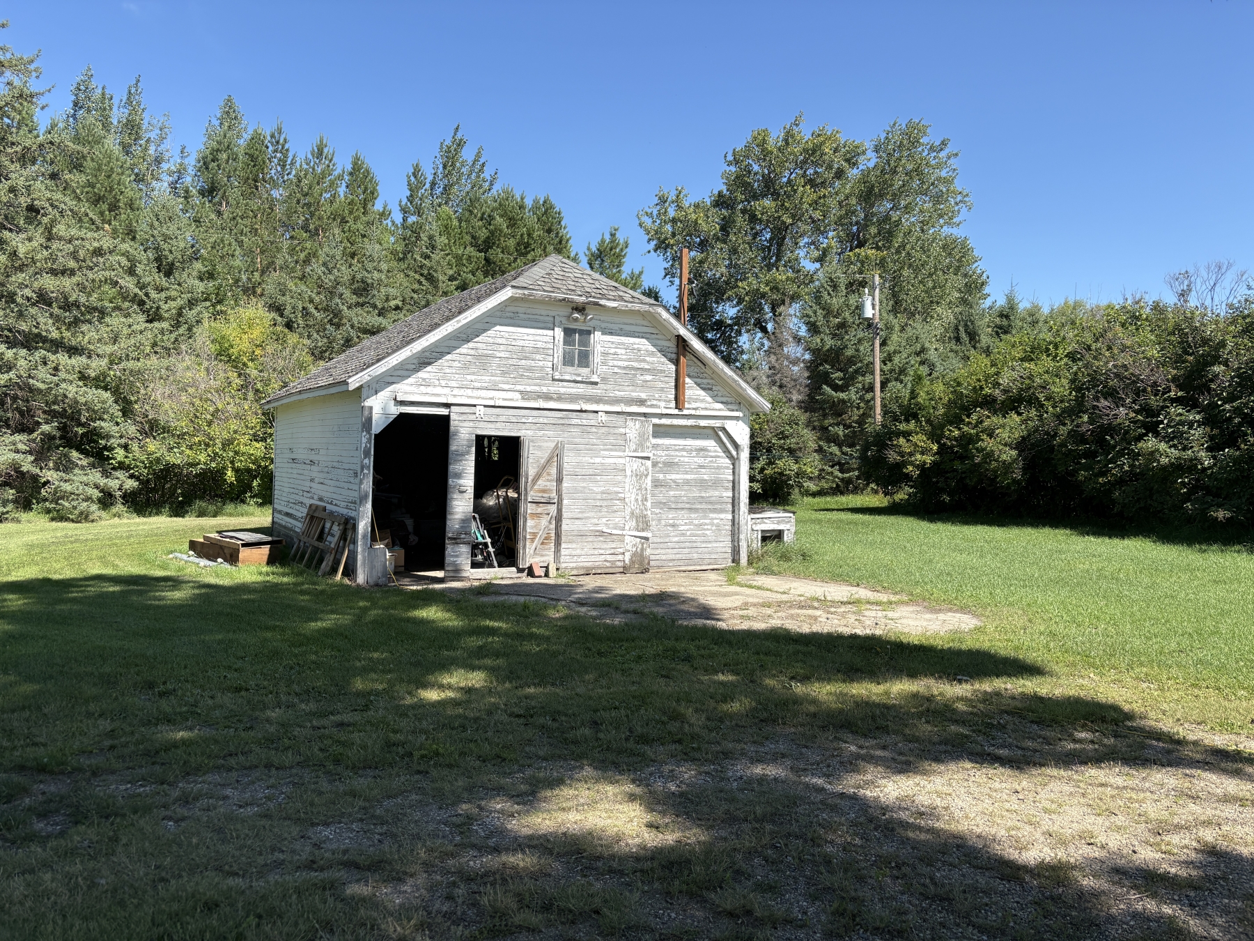 Outside, the properties include a classic hip roof barn with horse stalls, and a drive shed for additional storage or workshop space. The expansive yard and acreage provide ample room for gardens, animals, or simply enjoying nature in your own private sanctuary.